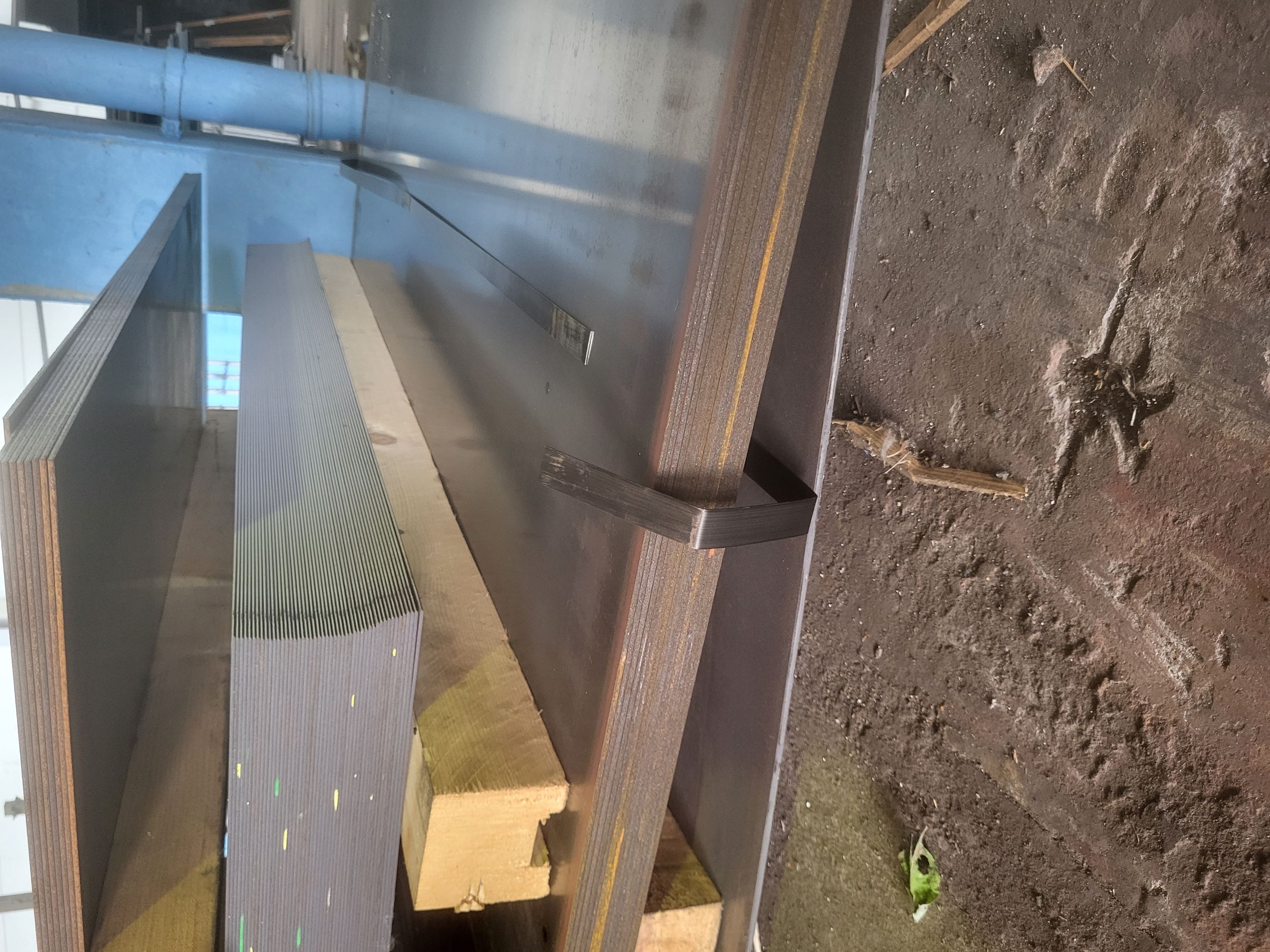 Hot rolled steel plates with varying geometrical proportions. The steel plates are purchased from a wholesaler in Sweden, who in turn purchases the steel plates from manufacturers in Denmark and in Germany. The steel plates have a steel grade of S355. The steel plates are based on a weighted average of 10% pre-consumer scrap steel and 90% primary steel.
