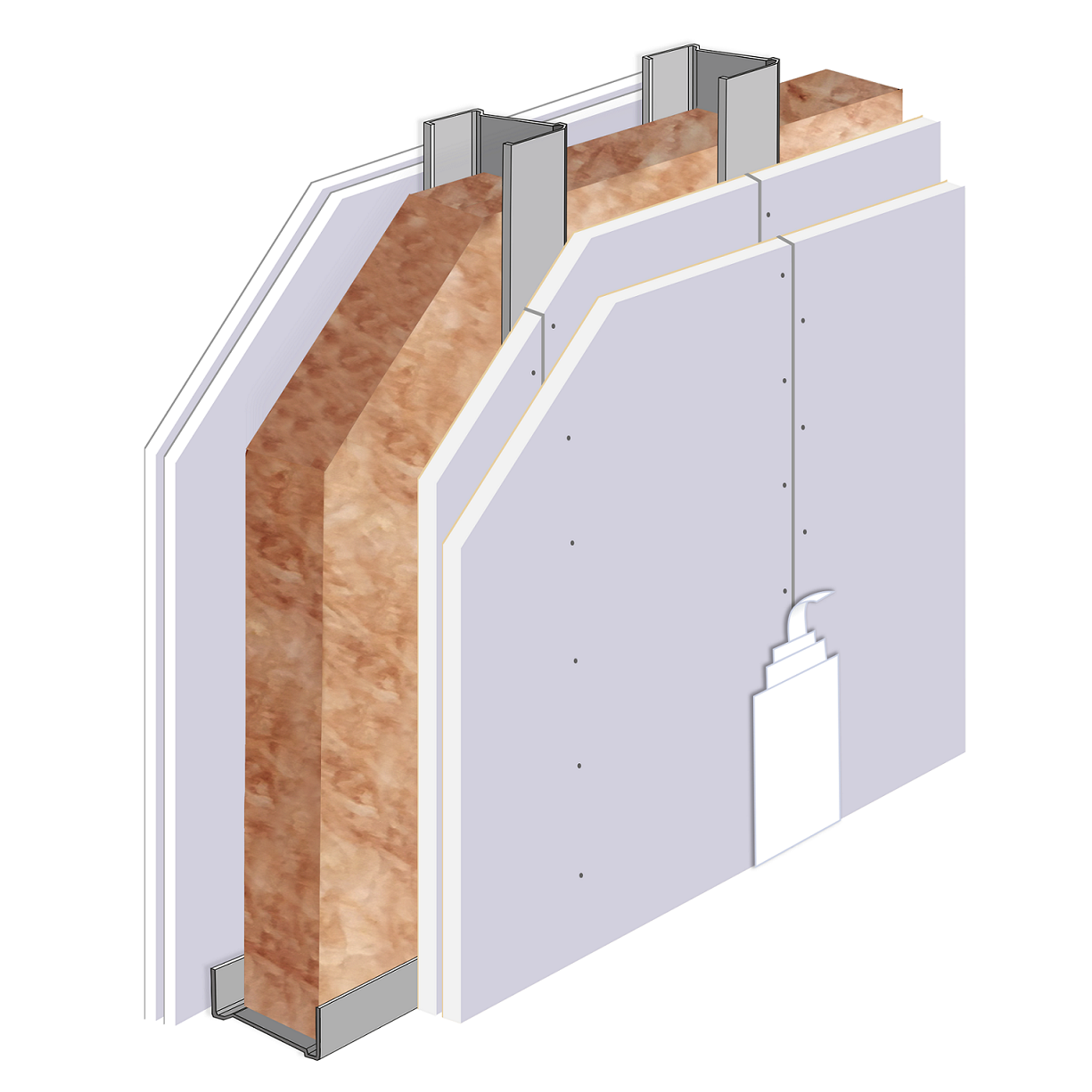 The Isover and Placo® acoustic insulation partition system, with a simple structure, made up of four 12.5 mm thick Placo® PPH 13 plasterboards, screwed to a galvanized steel metal structure made up of 0.4-1 mm metal profiles, 48 mm thick and modulated at 600 mm, resulting in a total finished partition width of 98 mm. It also includes 48 mm thick Arena APTA mineral wool, with a thermal conductivity of 0.034 W/m.k and thermal resistance of 1.40 m2. Proportional part of joint paste and tape, Placo® screws, fixings, Placo® 45 sealing strip under the perimeter profiles. Finish level of joint treatments Q2.