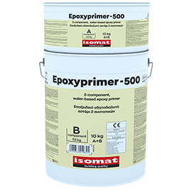 EPOXYPRIMER-500 is a two-component (A+B), water-based epoxy system. It provides high hardness and abrasion resistance. It can be applied to dry or slightly damp substrates without standing water. It is used as a primer of ISOFLEX-PU 500 and other polyurethane systems when applied to non-absorbent substrates or old waterproofing layers. It may also be used as a primer, as well as for preparing (with the addition of quartz sand) a repairing (filling) material for cement-based substrates such as concrete or cement screeds to be covered with epoxy floor coatings from the DUROFLOOR range.