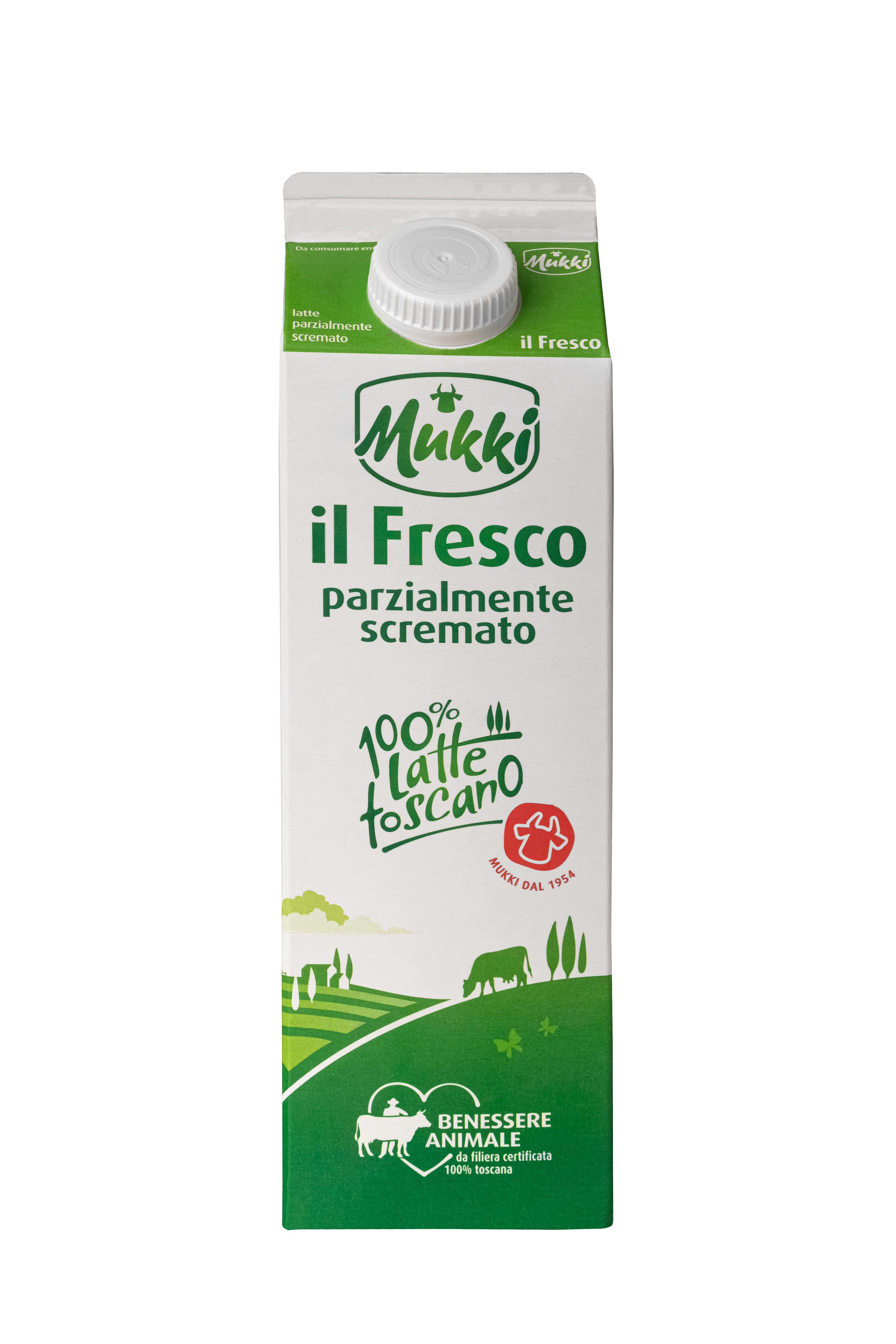 Latte fresco pastorizzato parzialmente scremato 100% Toscano Mukki