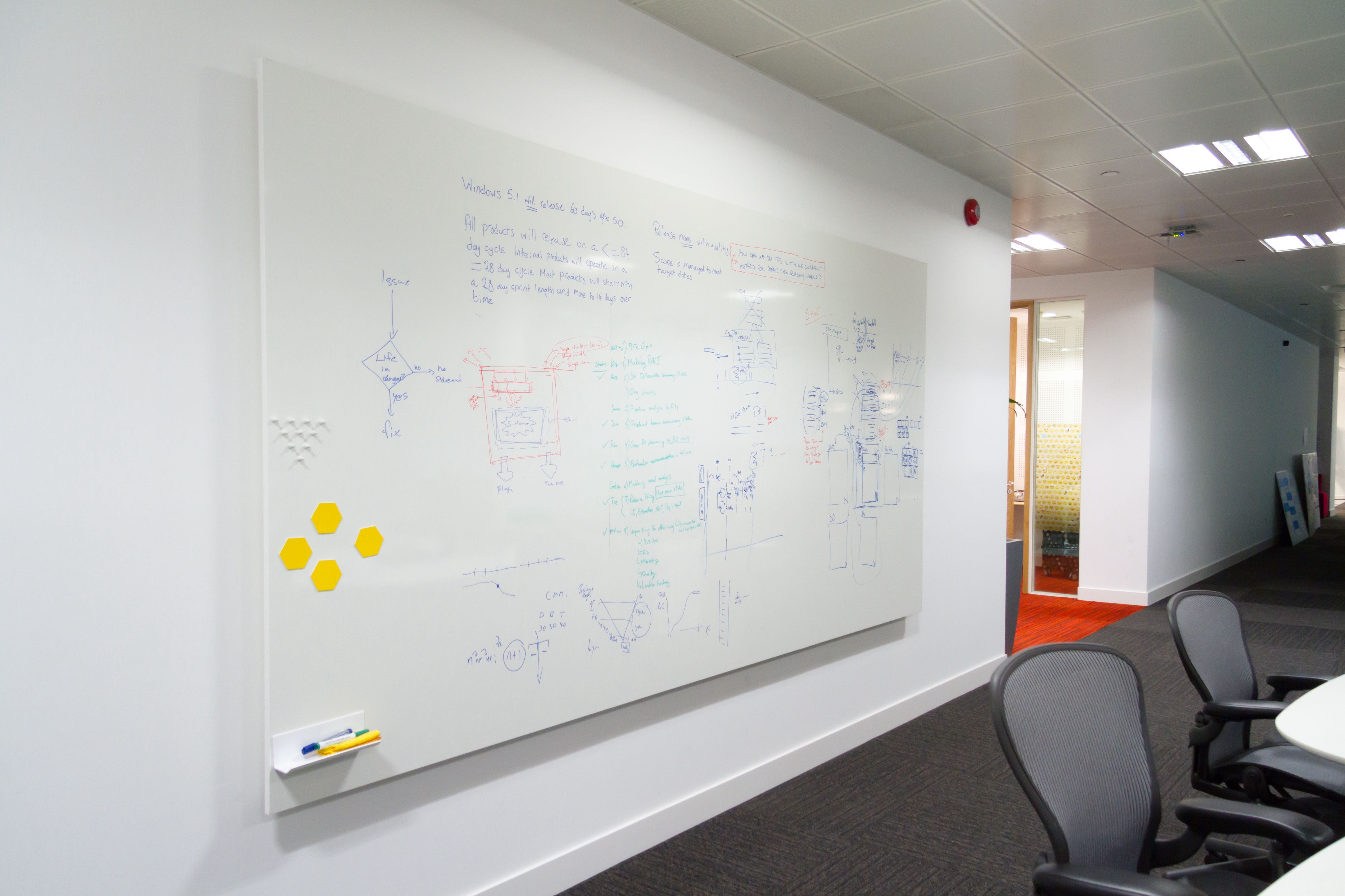 Wall-mounted ThinkingWall is a frameless modular magnetic whiteboard system that delivers the functionality of a traditional whiteboard with a high quality, contemporary look and feel.