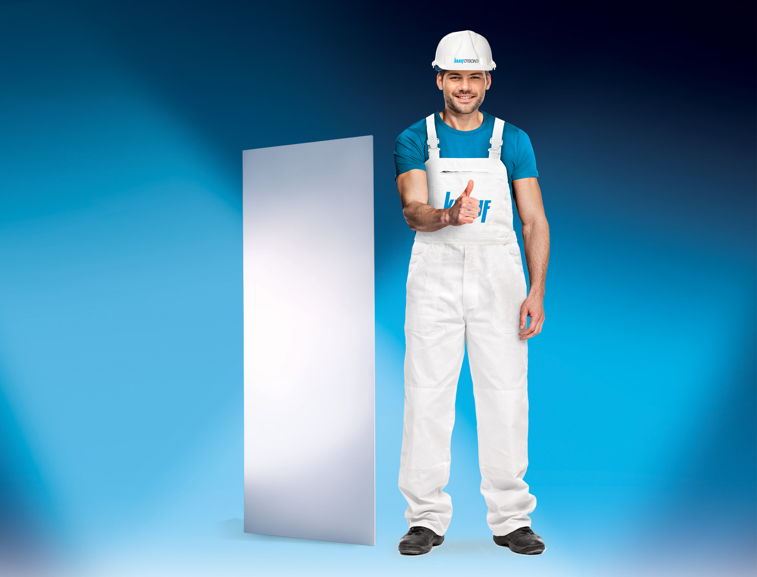 This is a plasterboard that has a core made of gypsum, minerals, additives and a wrapping of paper from both sides. The color of the board’s front is grey. The regular board is intended to be used for all sort of structures for cladding walls and ceilings, for the application of partitions between rooms, for design construction, for round partitions or as a second layer in partitions and cladding of walls.