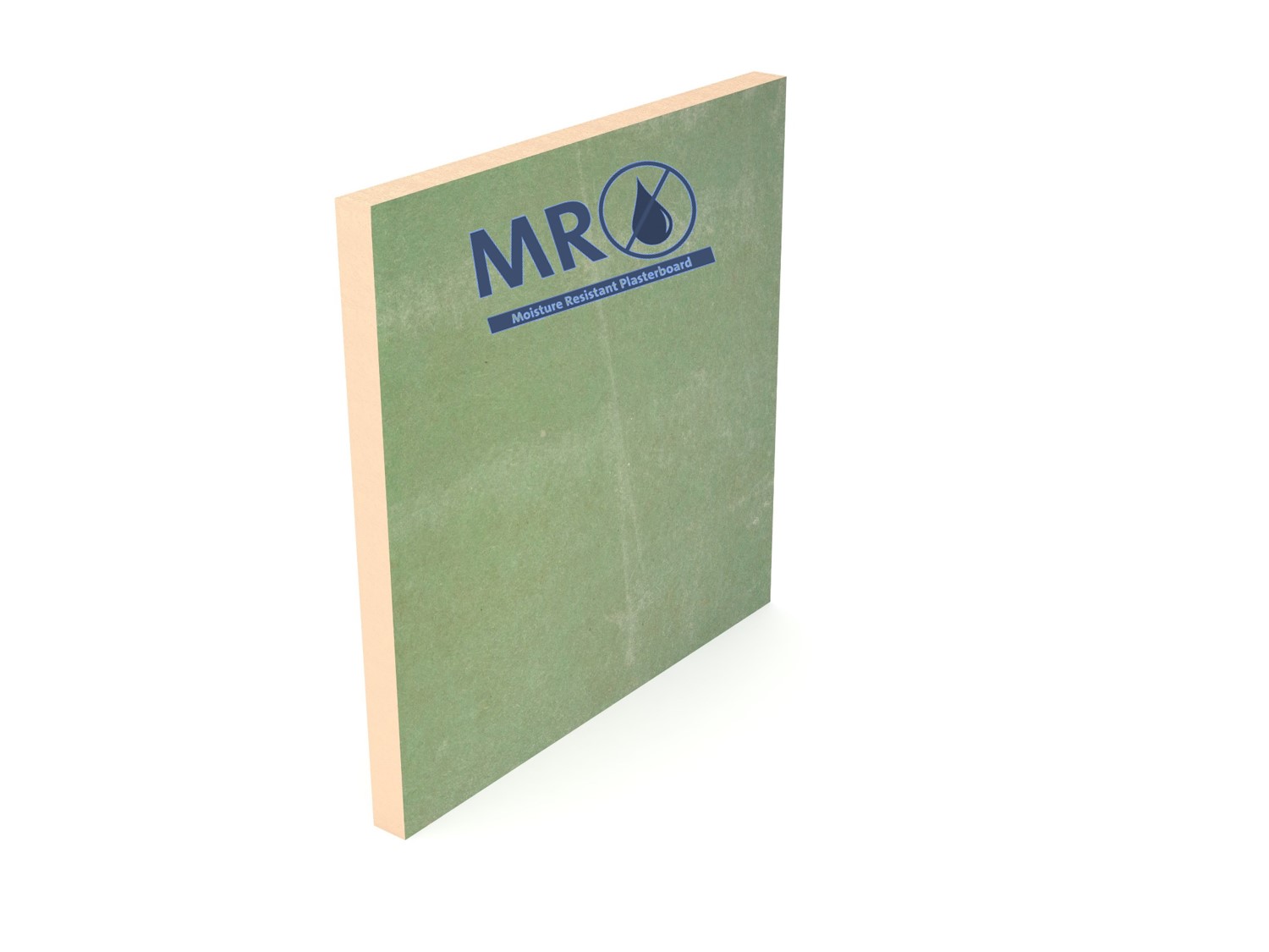 Moisture Resistant Board consists of an aerated gypsum core with special water repellent additives encased in and firmly bonded to, strong moisture-resistant paper liners in green colour.